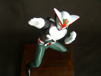 バロムワンの資料を見ると、イエローや黄緑っぽいタイツのバージョンがあり、どのパターンでも格好良いと思いました。今回は、ご依頼主様からの指定で深緑のバージョンで塗装させていただきました。オリエントヒーローシリーズも最高に格好良い!! その事を再認識させられました。