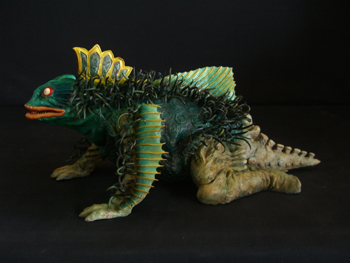 「ゲスラ」の色は、劇中や資料を見ても分かる様に‥これと決まった色は無く、油絵の様な多種な色彩が複雑に重なり合った感じの色味です。従いまして‥塗装は、プロップ資料やDVDを参考にプロセスを組み立てて‥また、自分なりのイメージも取り入れて塗装に挑みました。結果、限り無くプロップモデルに近い「ゲスラ」に仕上がったかと思います。