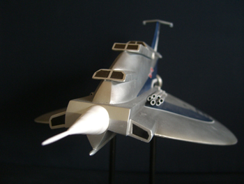 おなじみのステルス田中雷工房のホーク3号です。私は、ウルトラホークの中でも‥この3号機が一番 好きなんです。団扇のようなユニークな形状と云い、シンプルな彩色と云い‥本当に面白い(‥って、云ったら怒られるかな)戦闘攻撃機ですね。ウルトラ兵器の中では地味な存在3号ですが‥さすが、ステルス! 見事に存在感を出していますね。